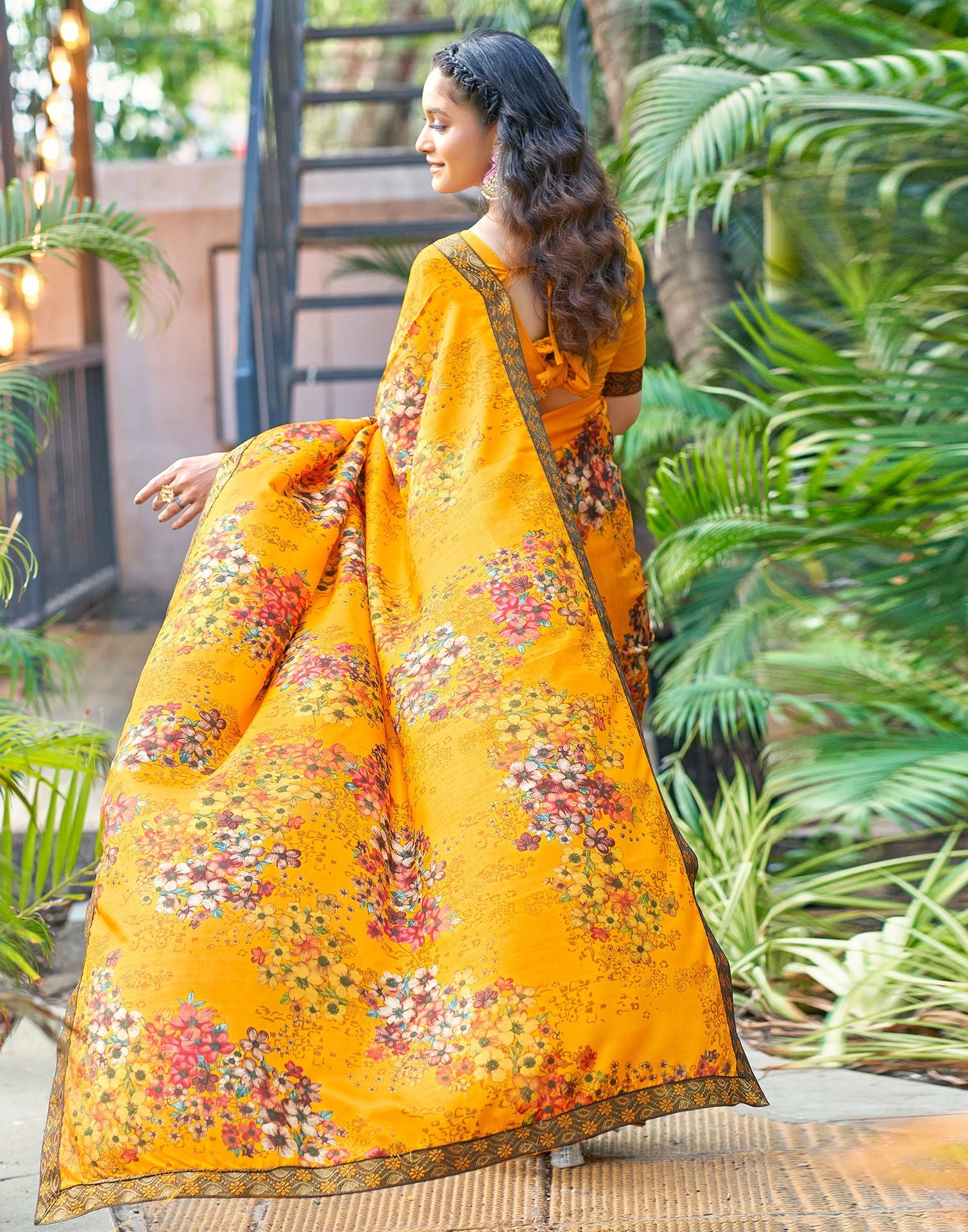 Turmeric Yellow & Multicoloured Printed Silk Saree