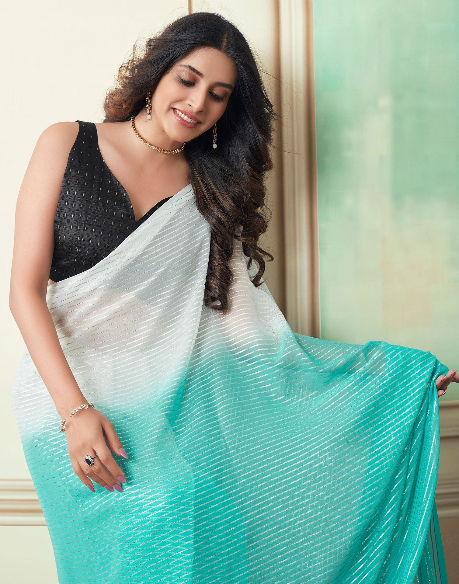 Ready to Wear Turquoise Wovern Zari Strip Georgette Saree