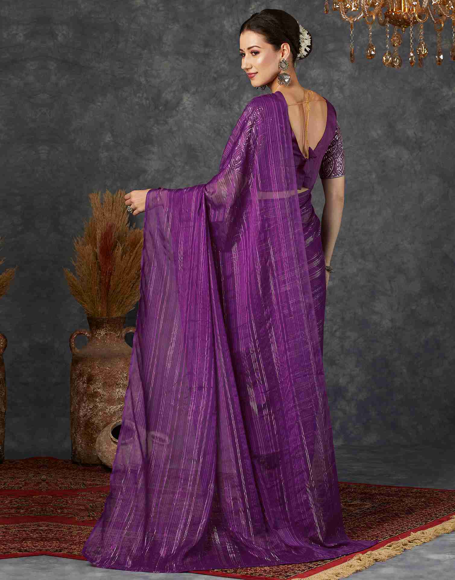 Dark Violet Georgette Plain Saree