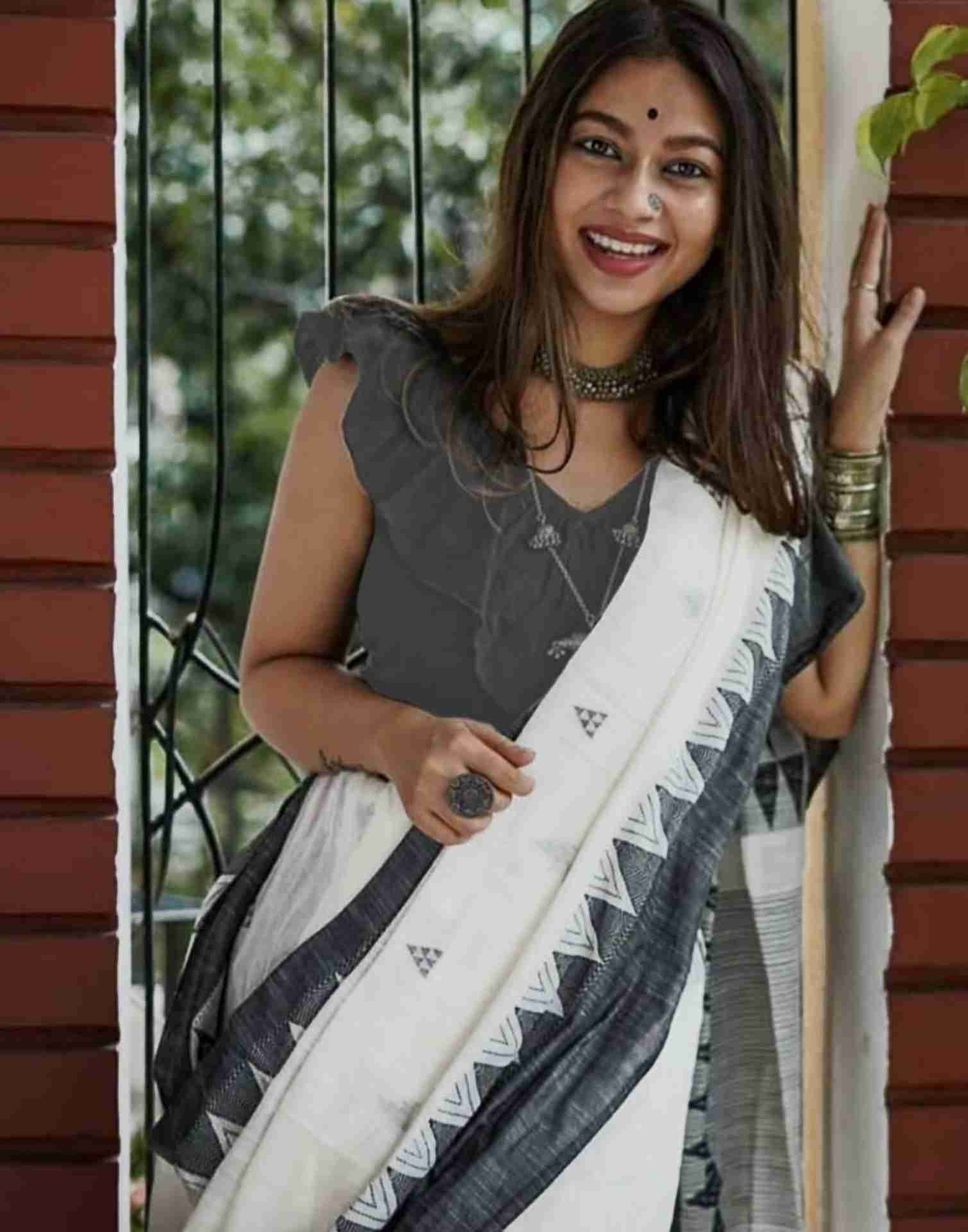 White Cotton Woven Saree