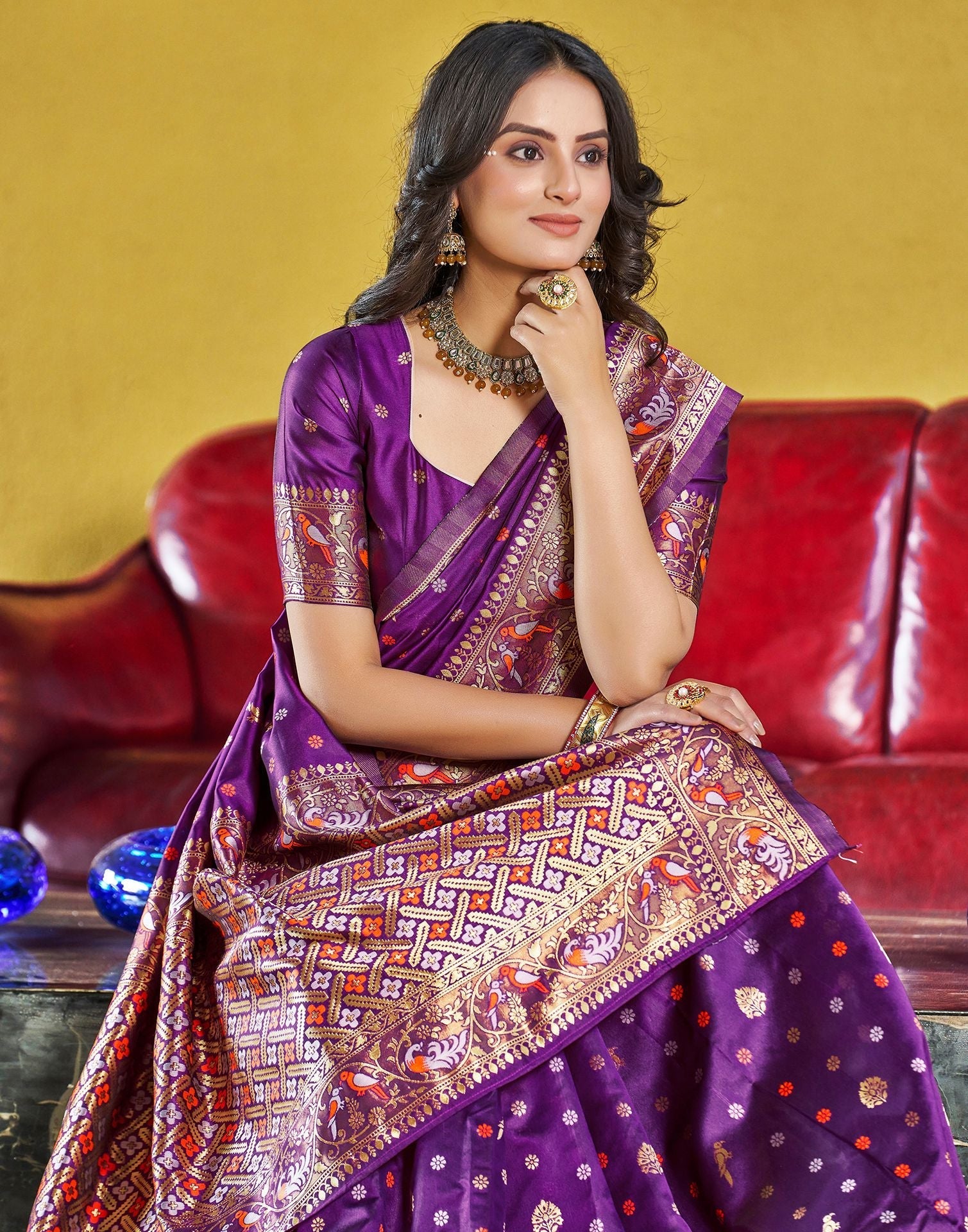 Purple Jacquard Silk Saree