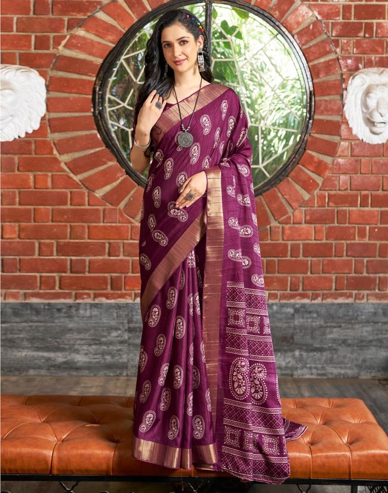Wine Silk Printed Saree