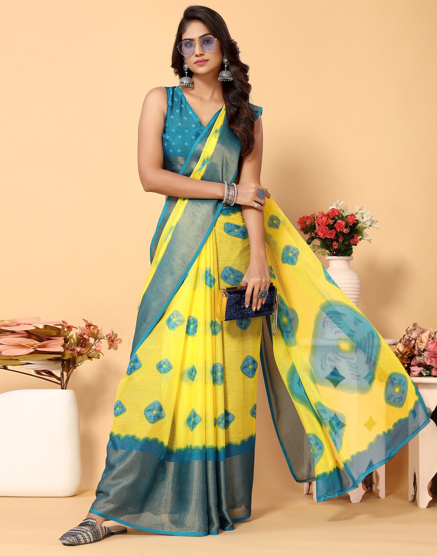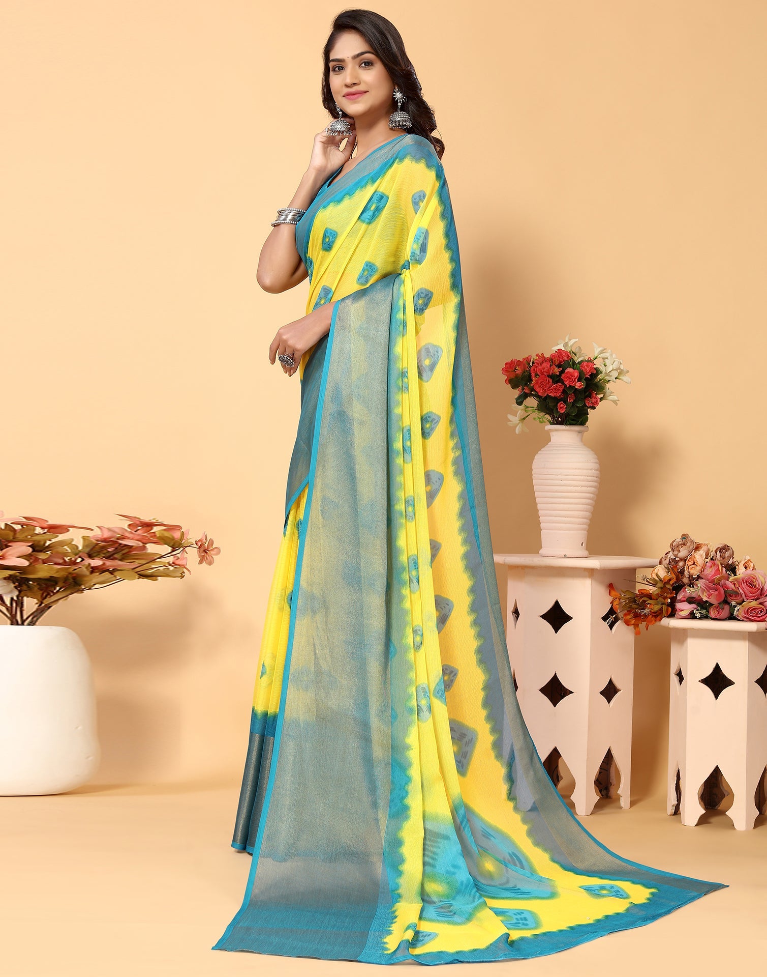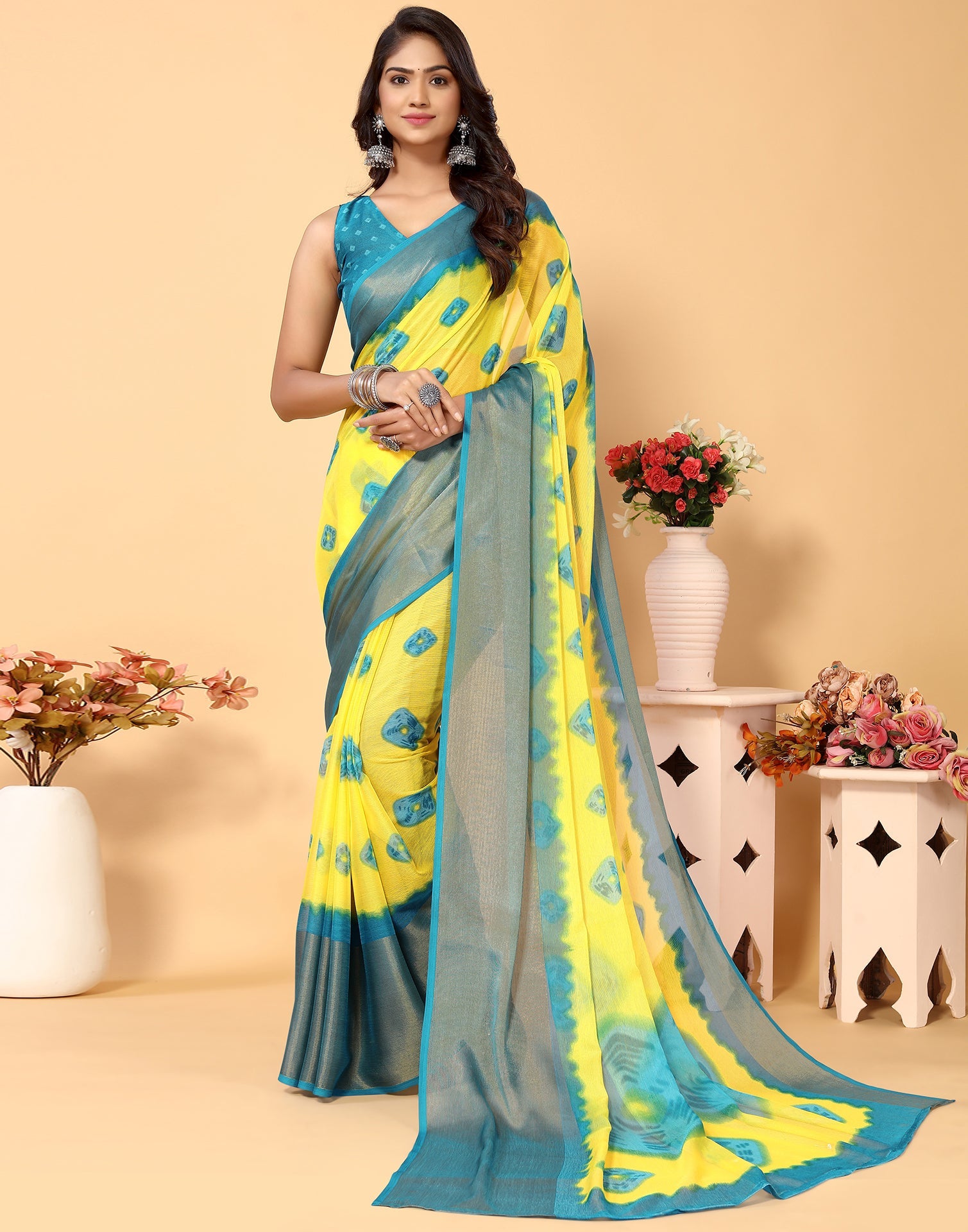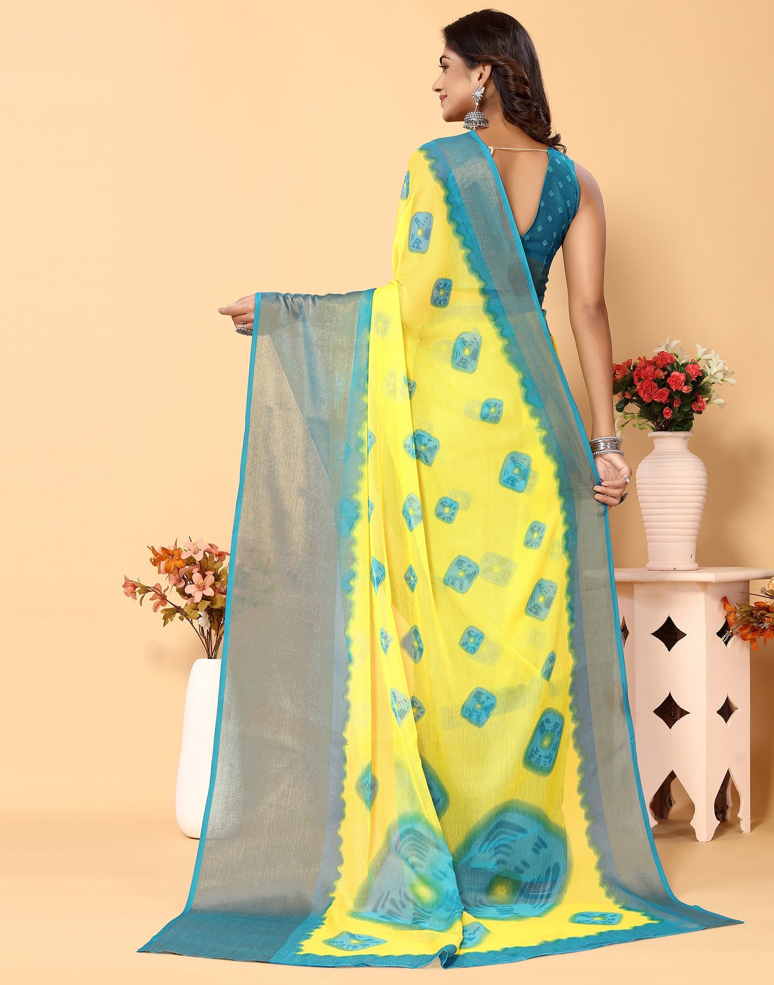 Yellow Chiffon Bandhani Printed Saree3116S802