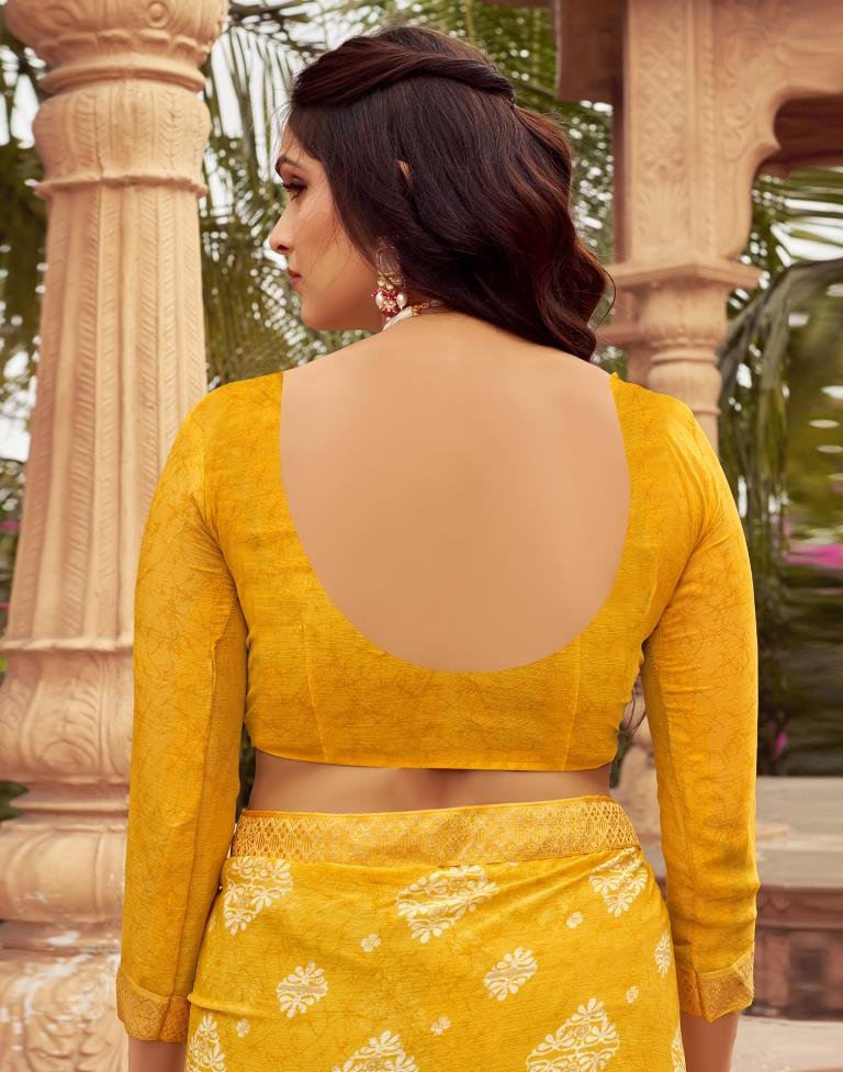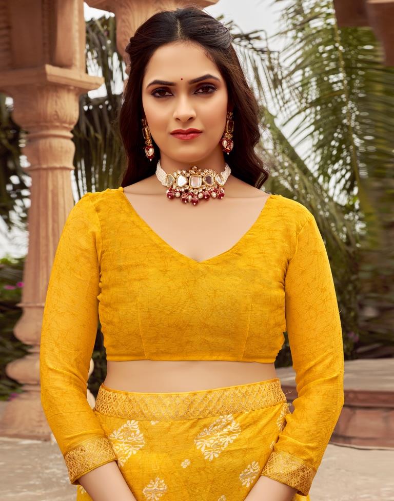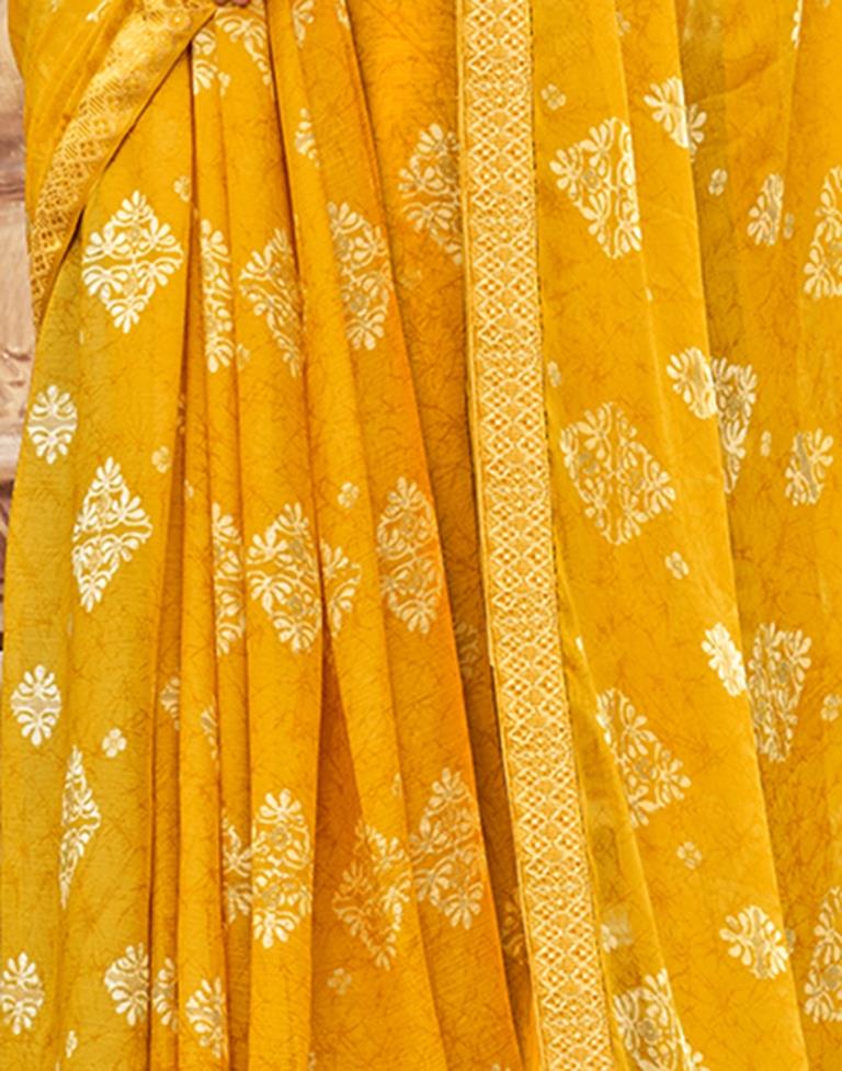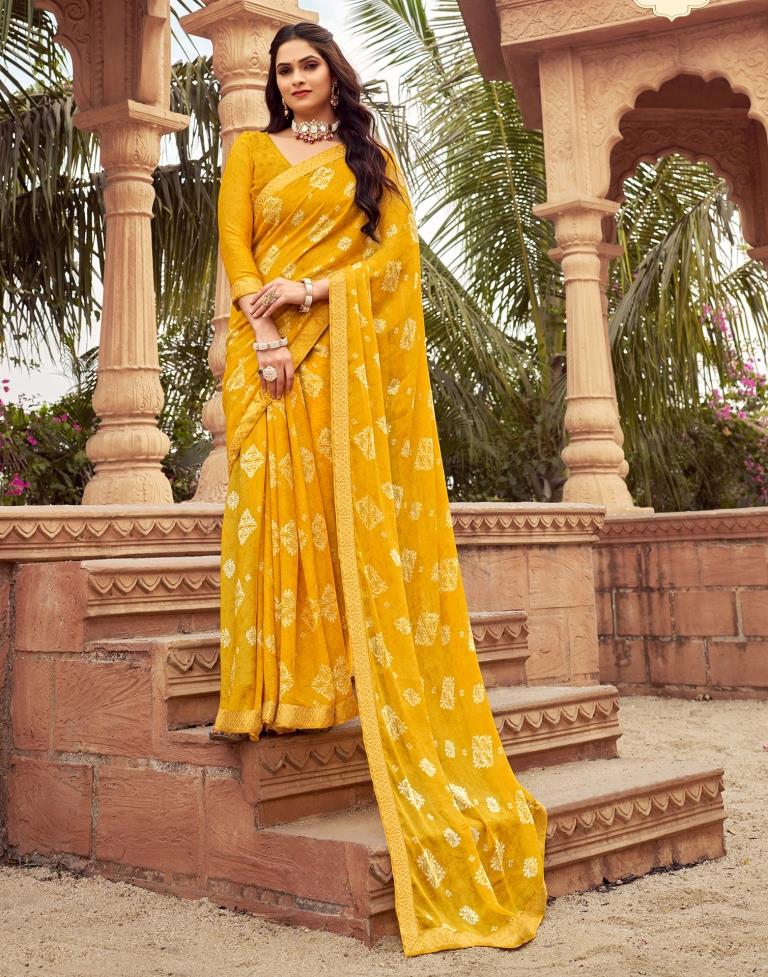 Yellow Chiffon Printed Saree