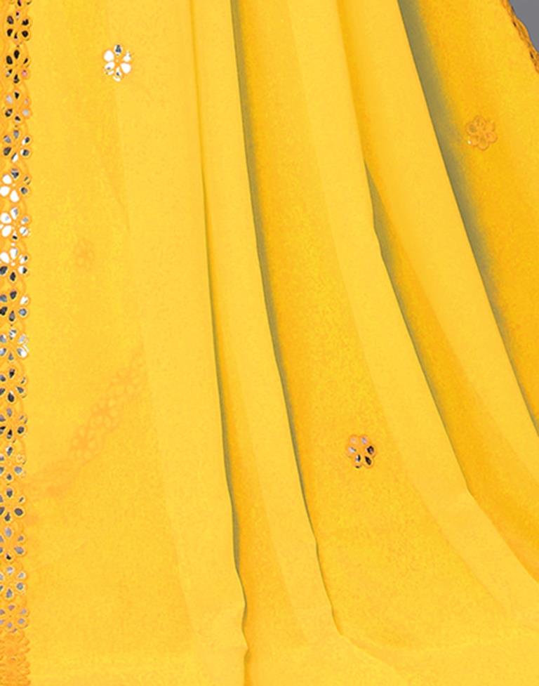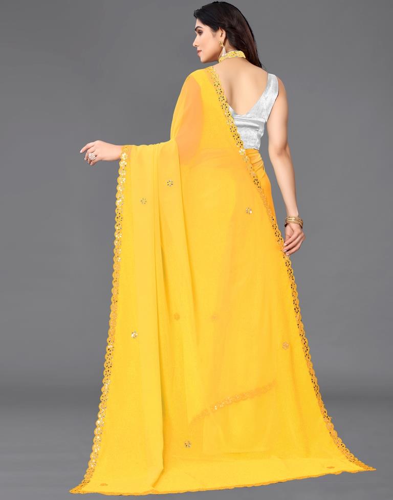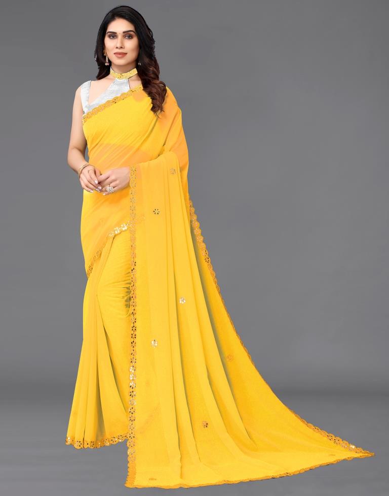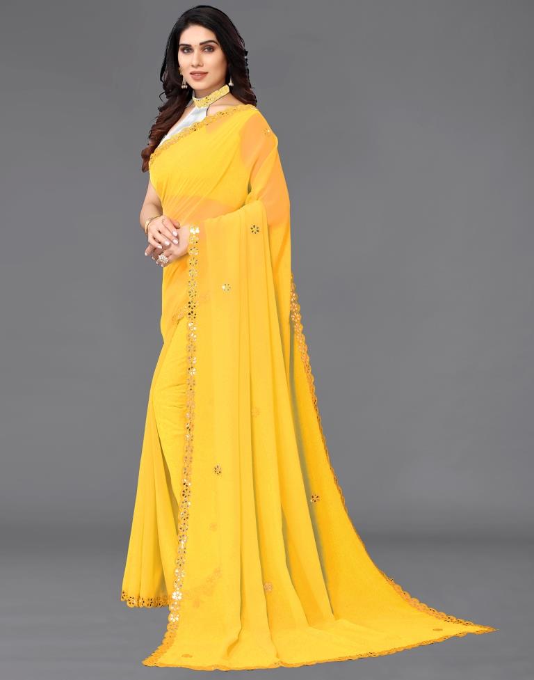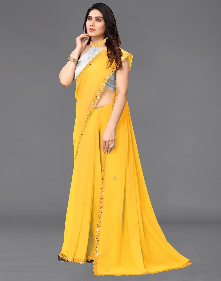 Yellow Georgette Embroidery Saree
