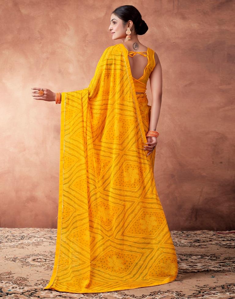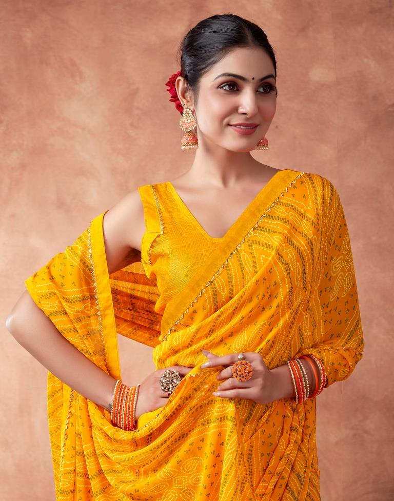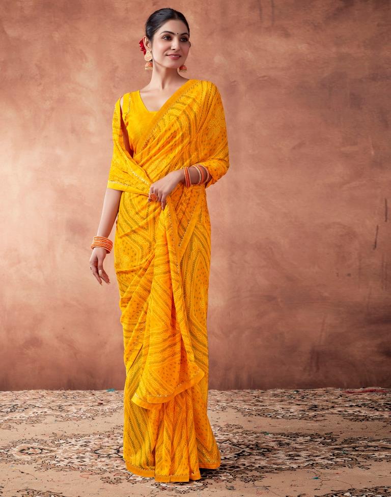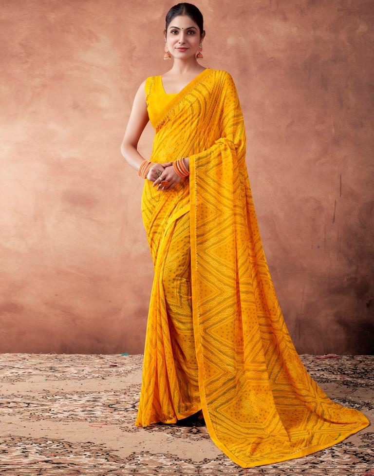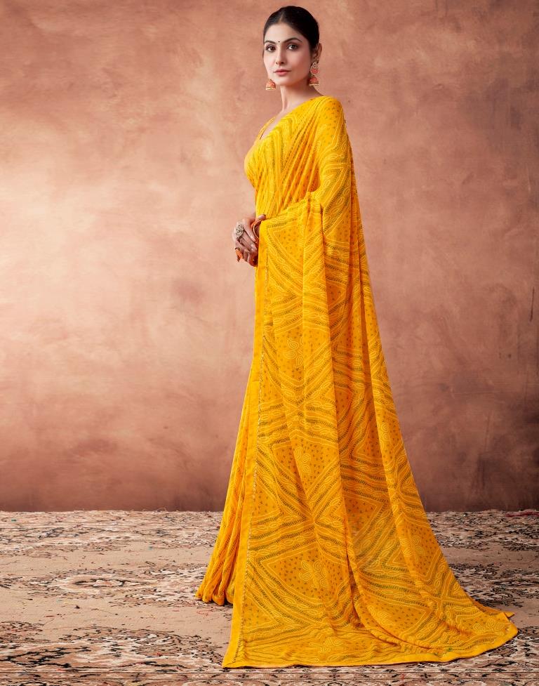 Yellow Georgette Printed Saree