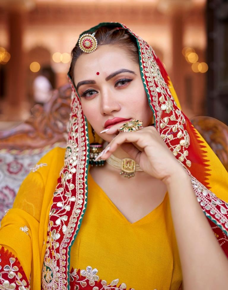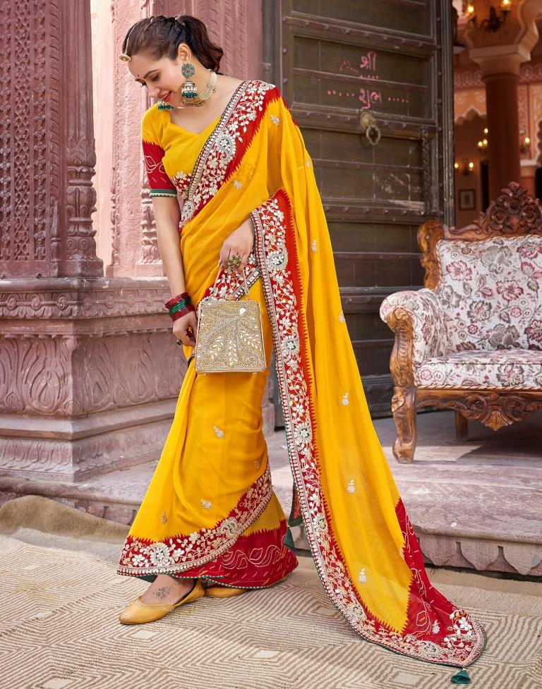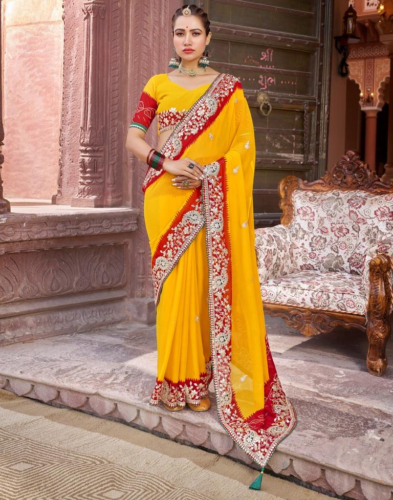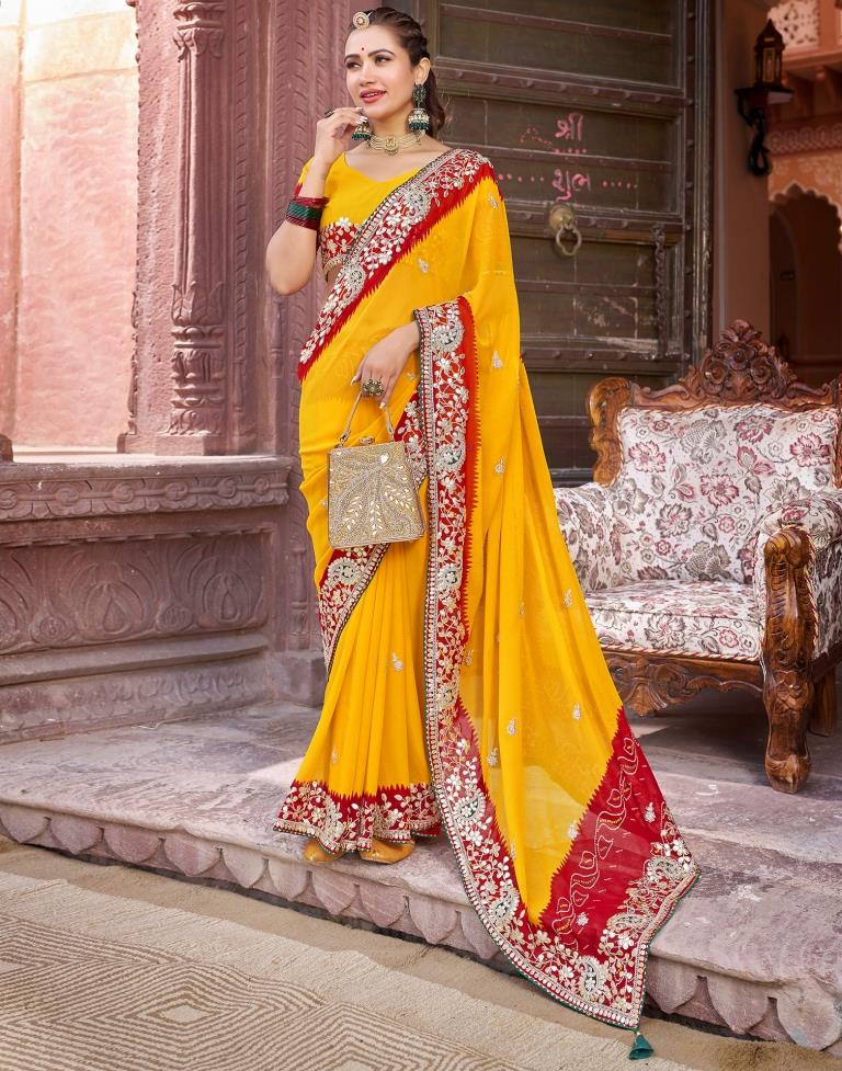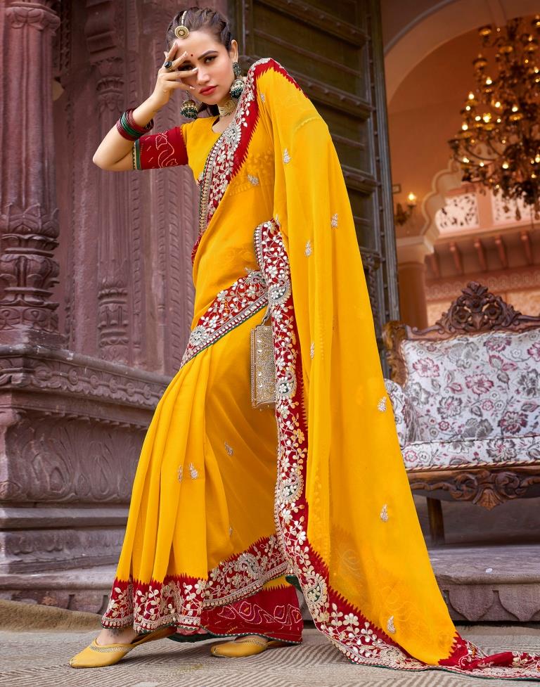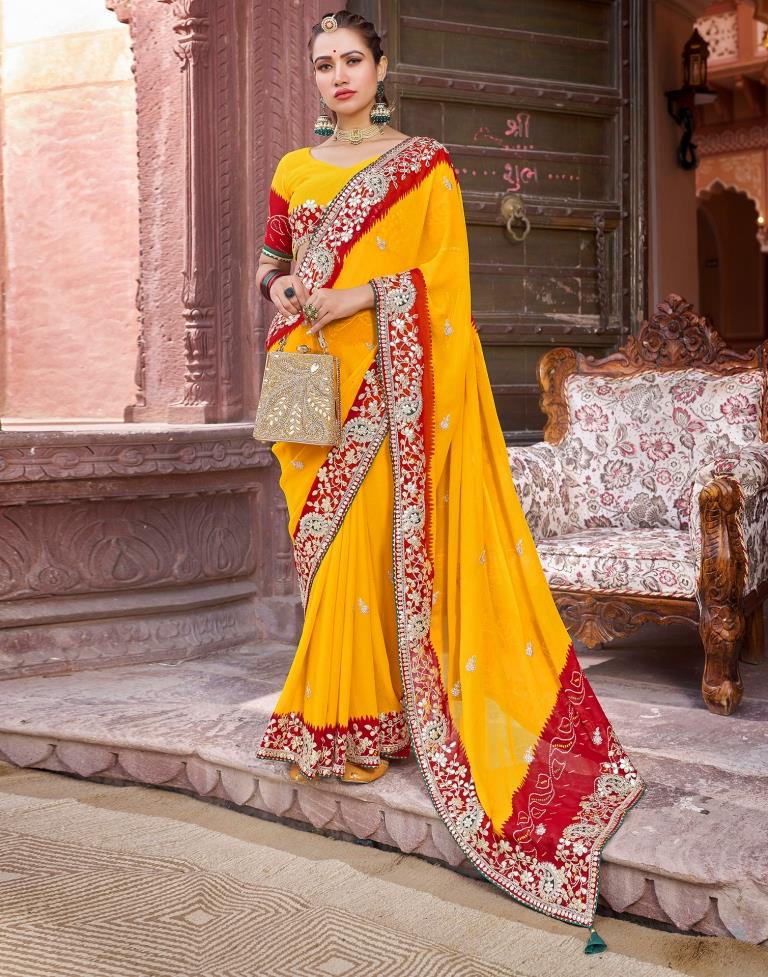Yellow Georgette Printed Saree