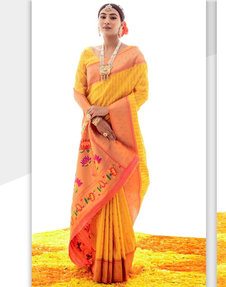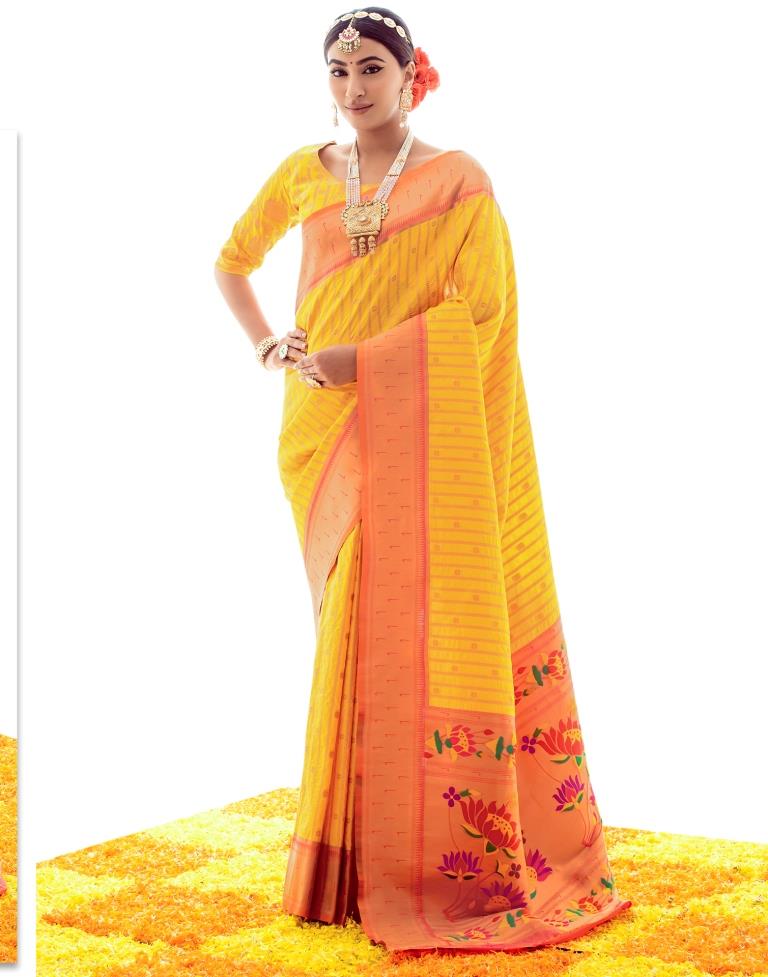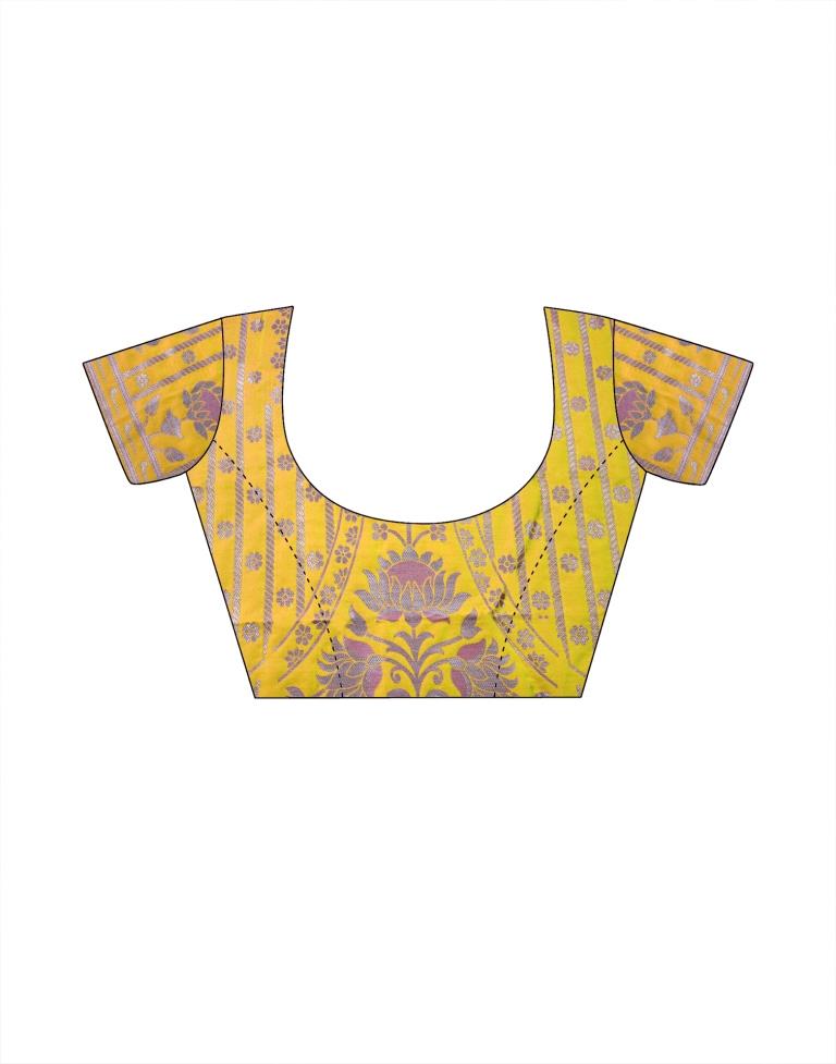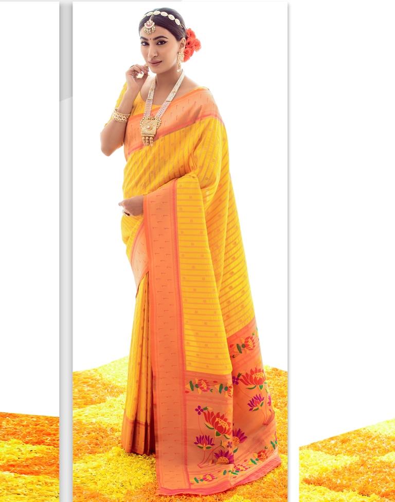 Yellow Jacquard Silk Saree