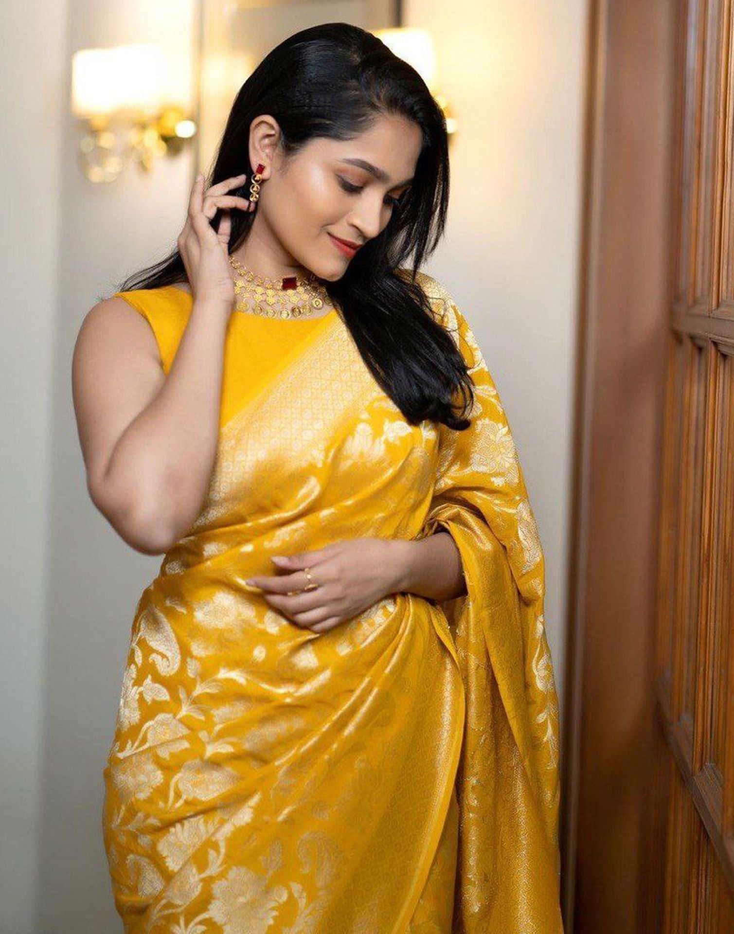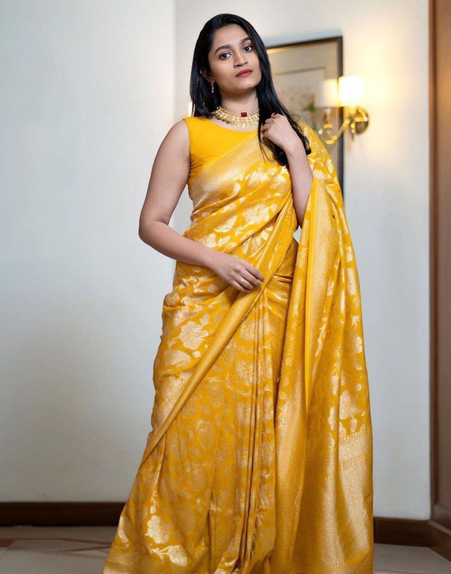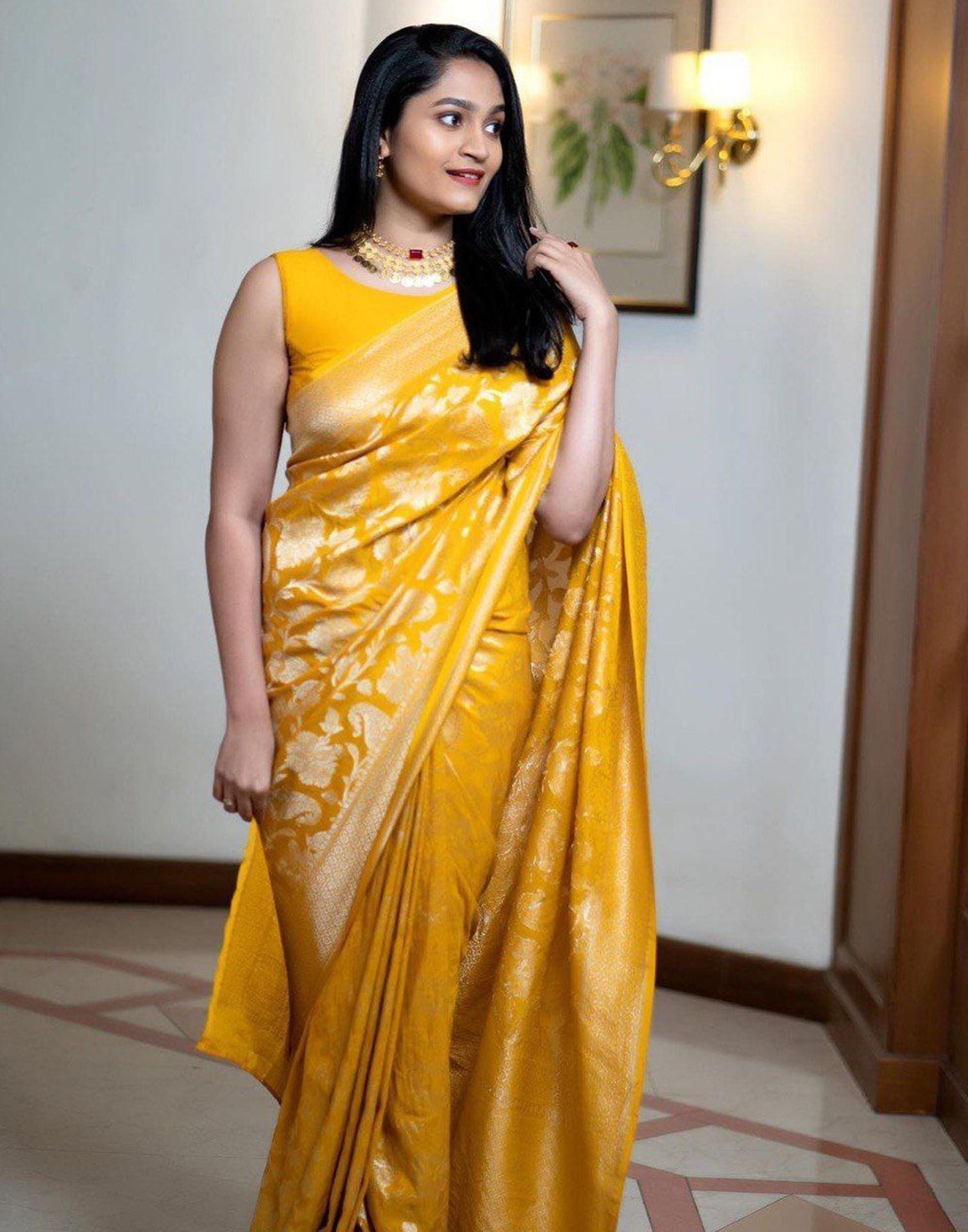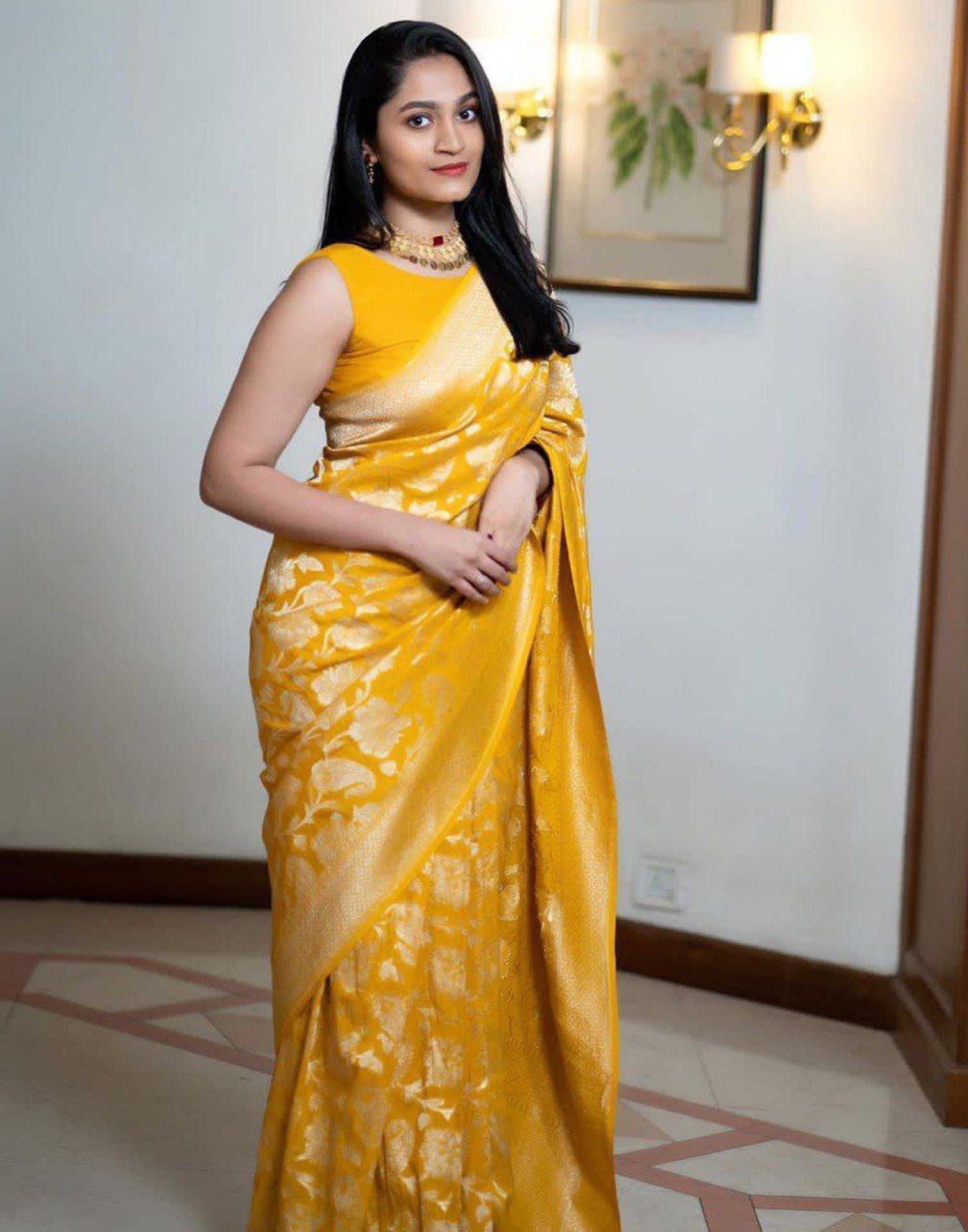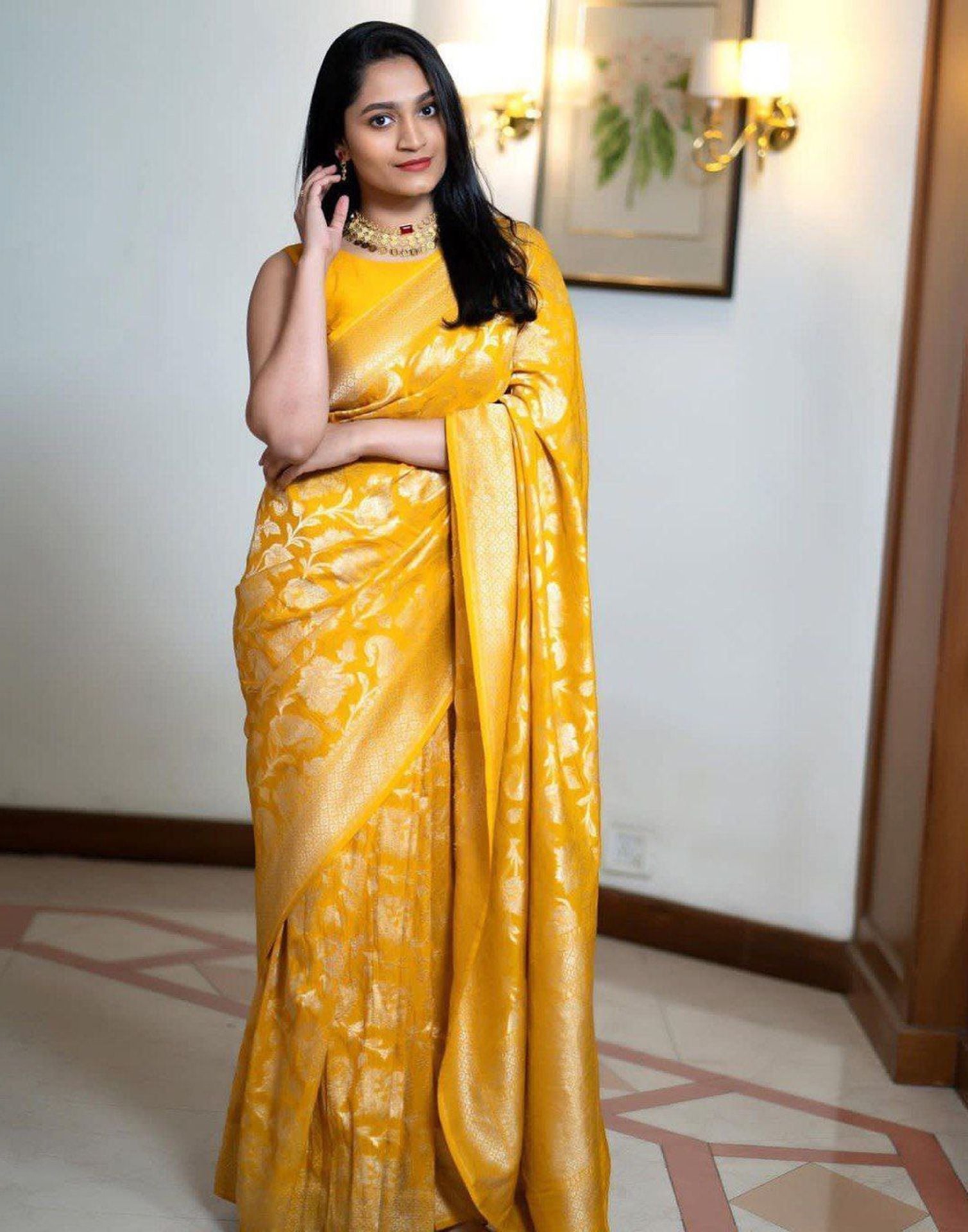 Yellow Jacquard Silk Saree