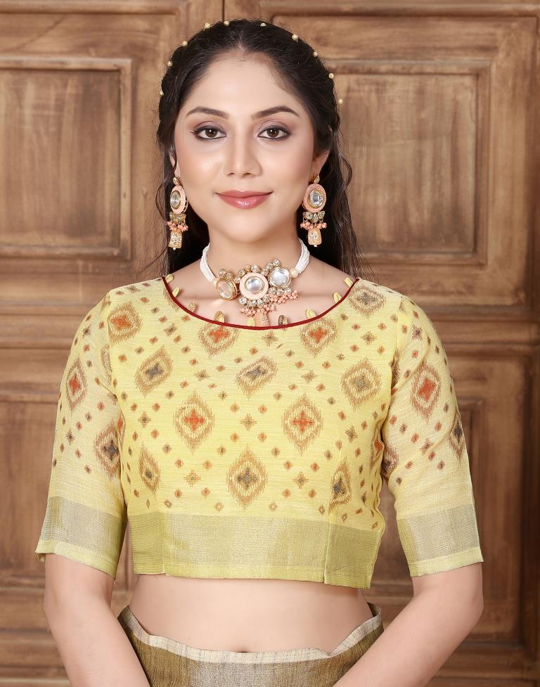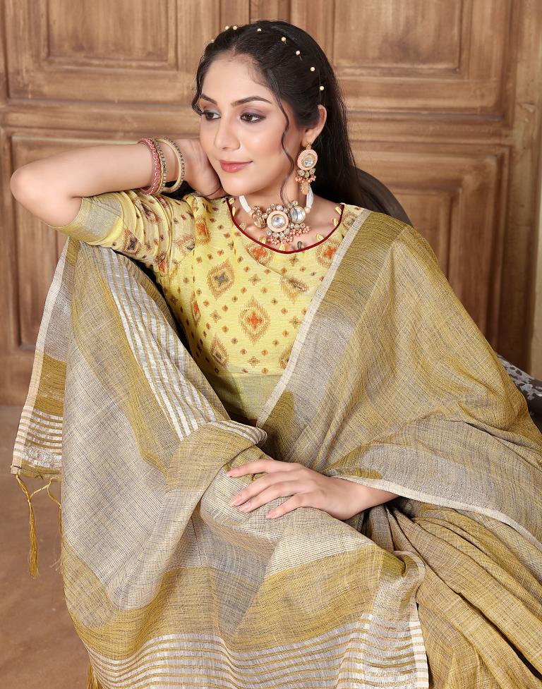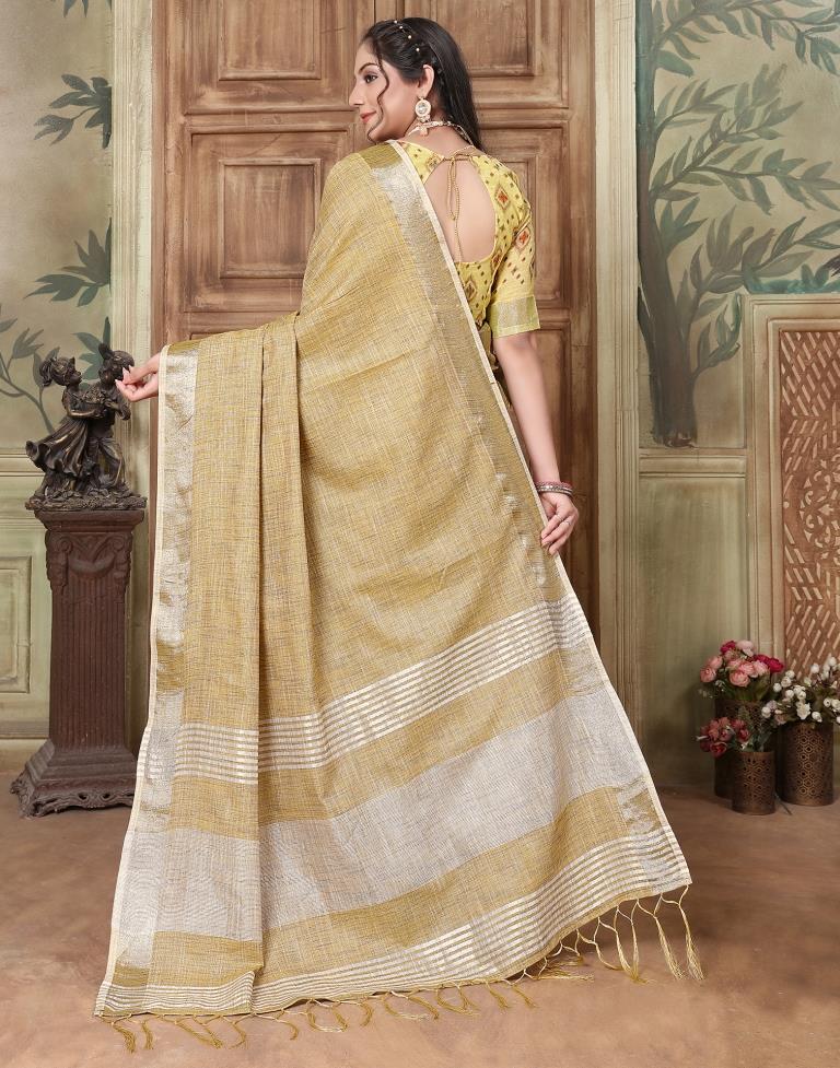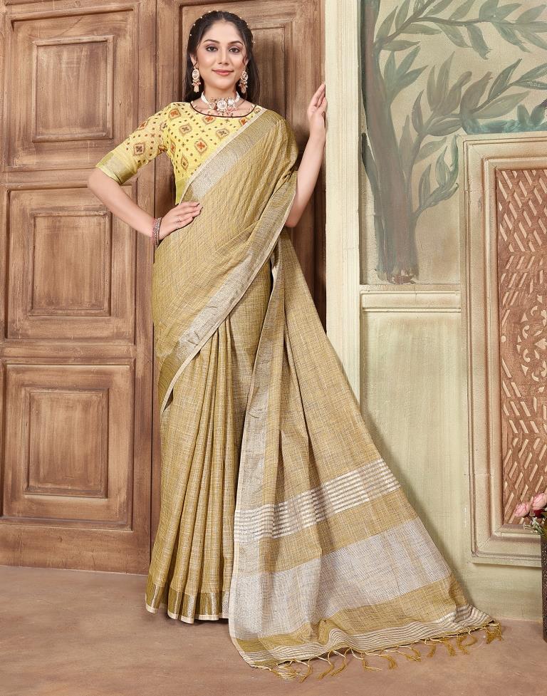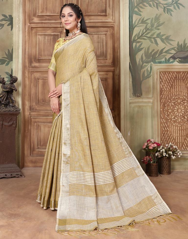 Yellow Linen Plain Saree