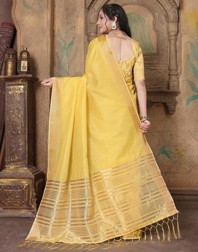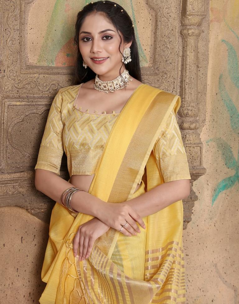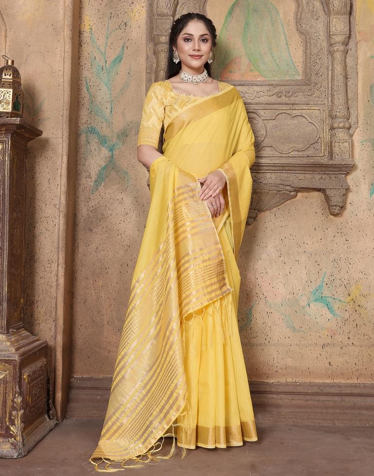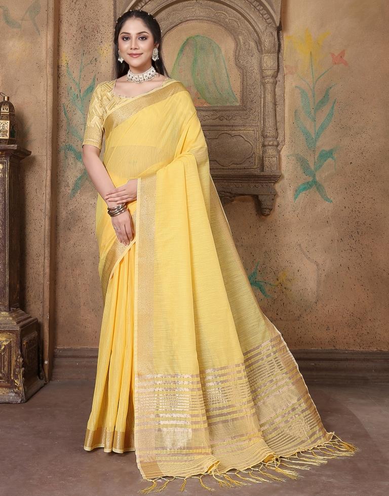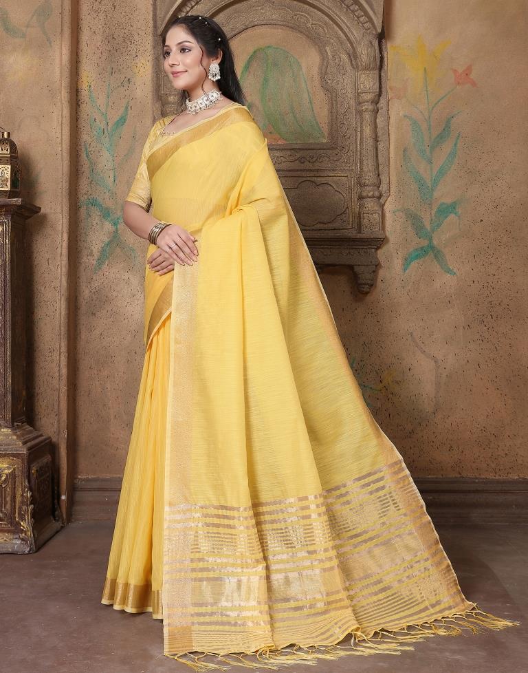 Yellow Linen Self Woven Saree